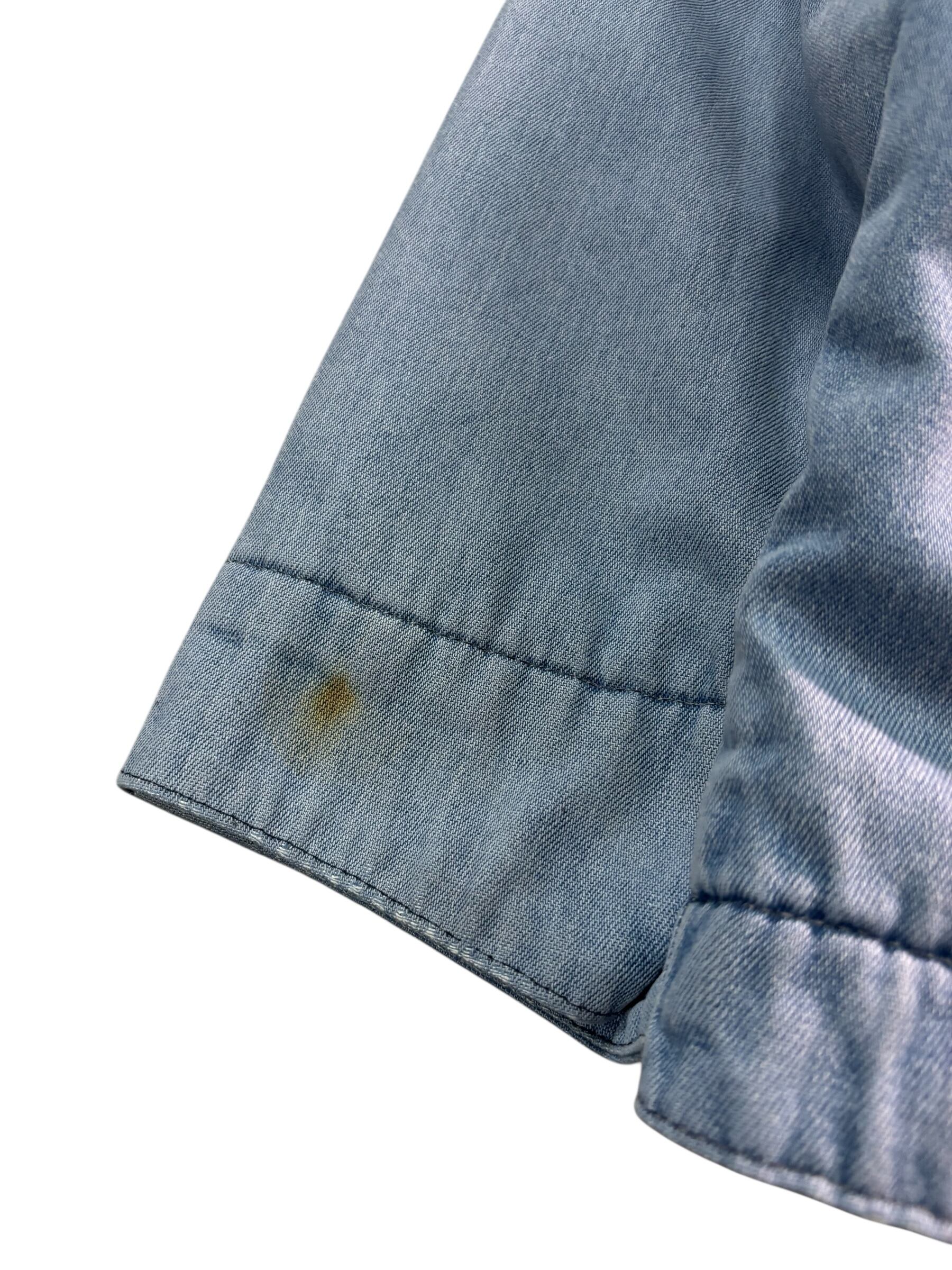 傷や汚れ:左肩と右袖口にシミ、胸ポケット横に糸引き、下ポケットと袖口に擦れ、裏地に毛玉、穴あり