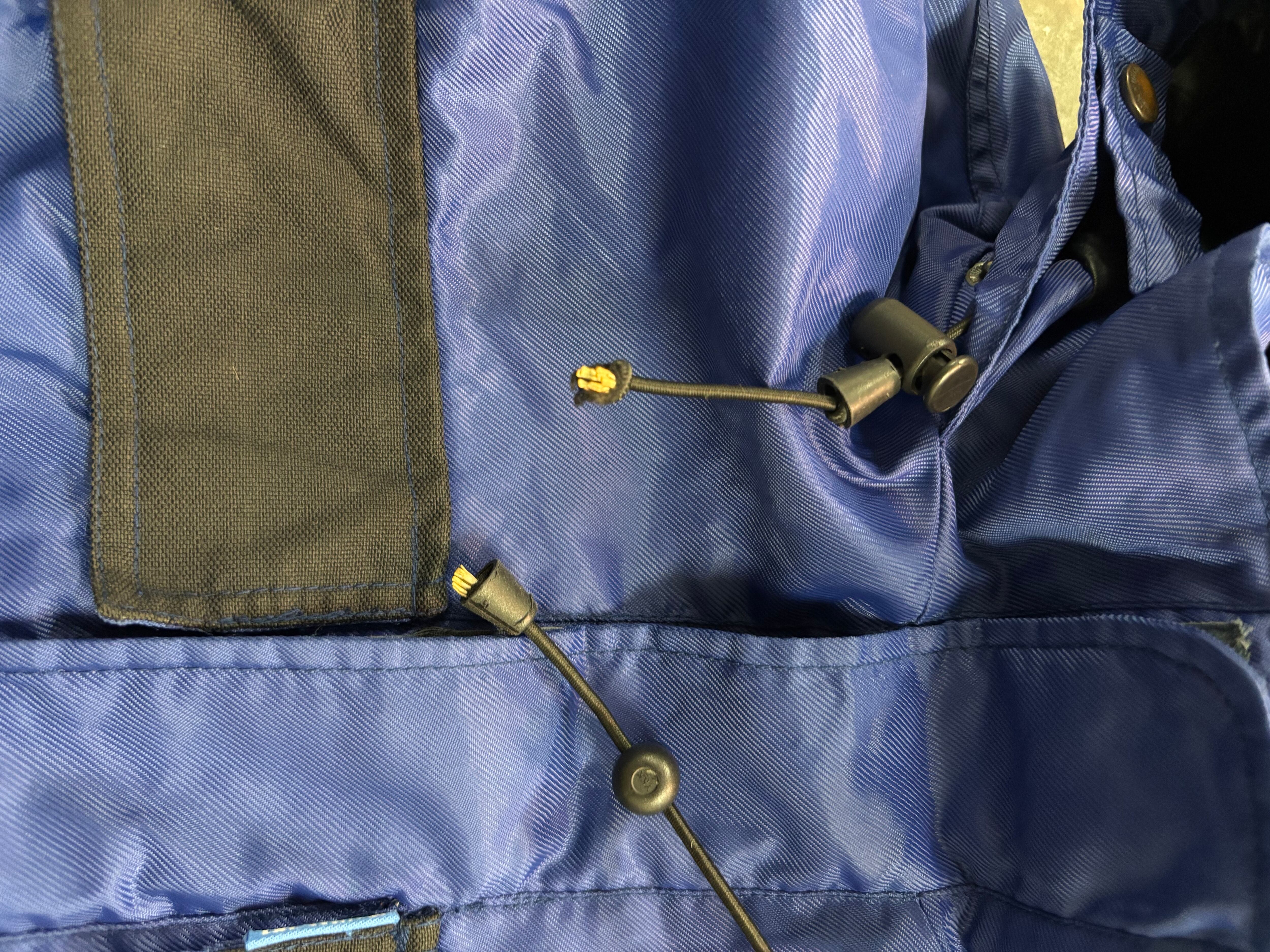 傷や汚れ:背面裾に汚れあり、首元のコード紐のほつれあり