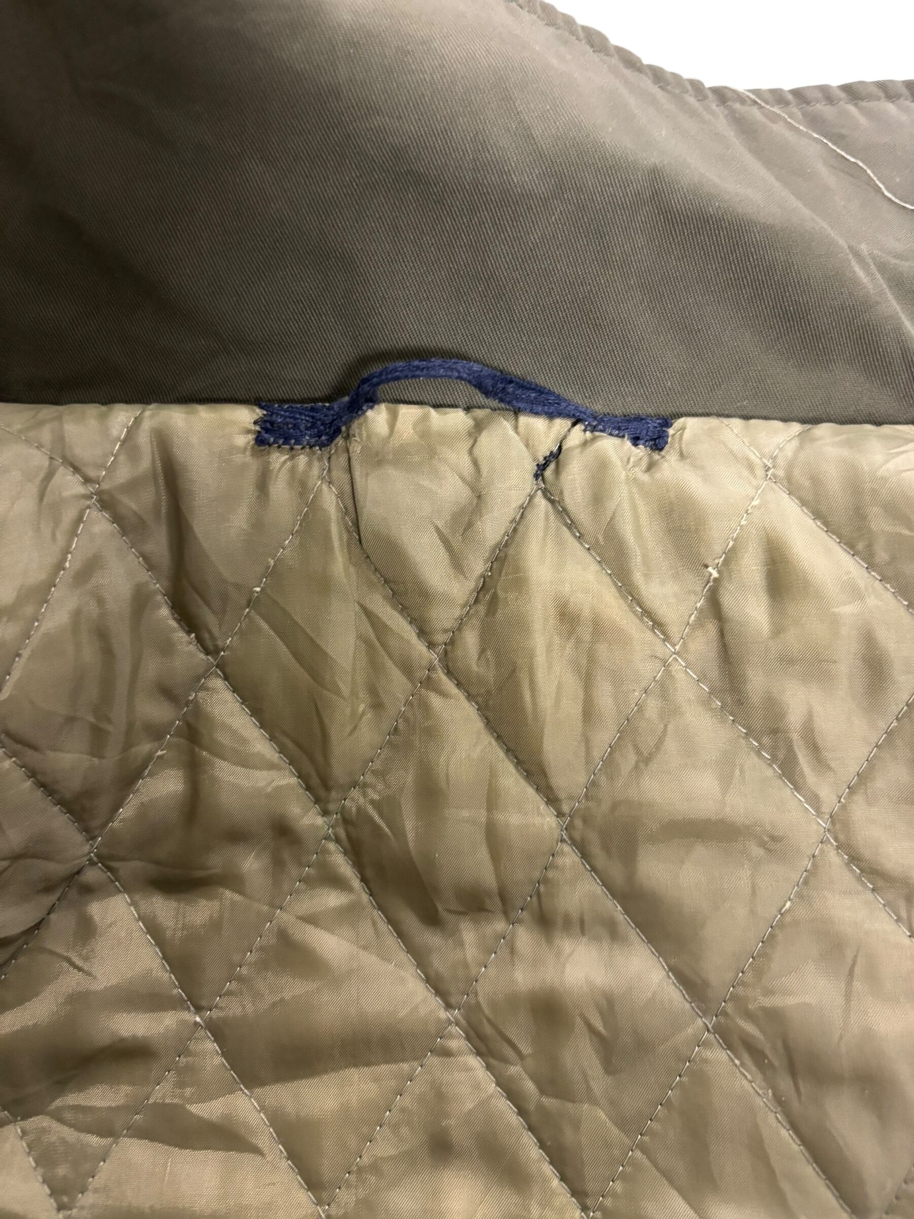 傷や汚れ:背中に破れの直し跡あり、左袖の小さな穴ふさぎ跡あり
